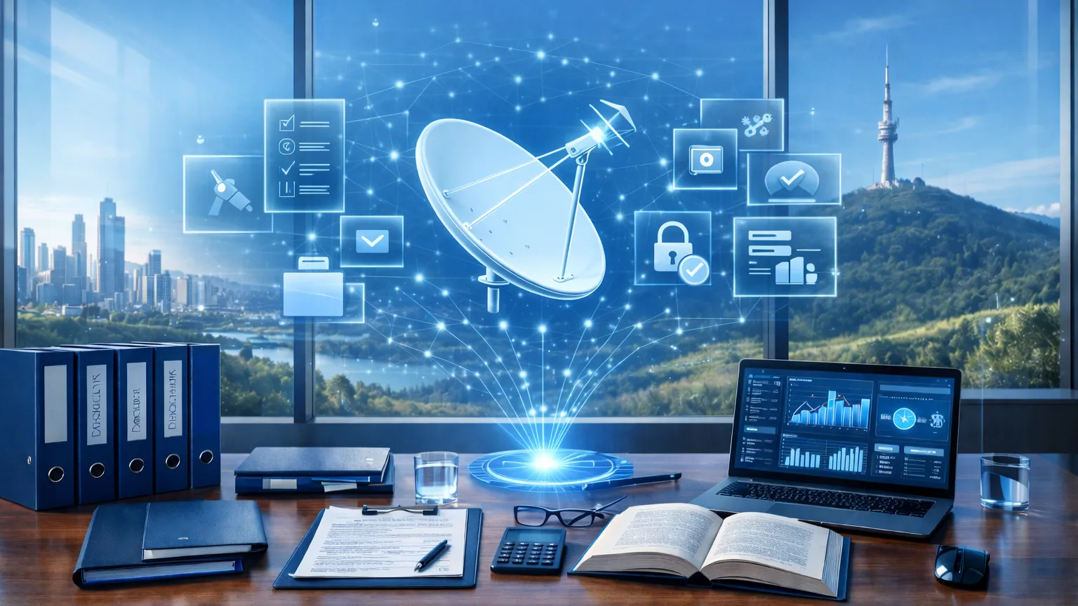 Спутниковая антенна необходима для приема сигнала со спутника, используемого компанией “Казтелерадио” для вещания телевизионных услуг. После отражения рефлектором (зеркалом) спутниковой антенны сигнал поступает в конвертор и, далее, передается по кабелю в ресивер.